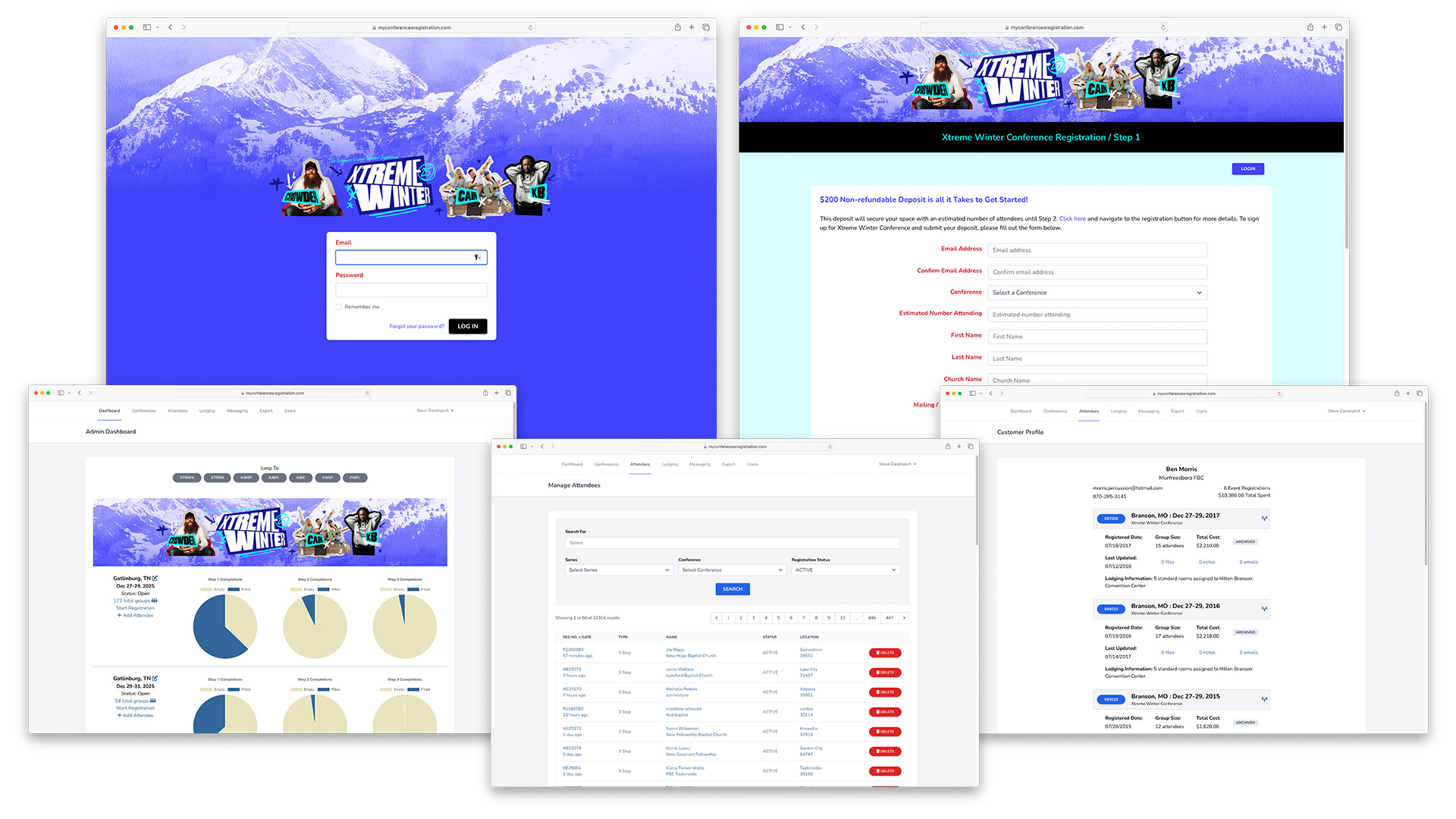 CrossEye, Inc was hired to plan, design, code and implement a fully customized conference management system that can manage an unlimited amount of simultaneous conferences taking place at an unlimited amount of venues with thousands of attendees. After more than a year in development, the site launched with the ability for multiple levels of system administrators to manage individual attendees, multiple conferences, assign lodging at local hotels, send out email messages from the system, display individual conference dashboards, export formatted records, archive records and collect all deposits in multiple forms of payments. This new online resource has been used to manage up to six conferences with more than 25,000 attendees in a single year. The system was coded in PHP and built for growth while continuing to be easily updated / modified upon request to further it’s already powerful capabilities.
